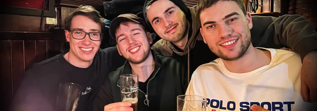 Natürlich haben wir diesen Meilenstein gebührend gefeiert – und wo könnte man das besser als im Irish Pub in Pforzheim? Auf dem Erinnerungsfoto sind vier unserer Spieler zu sehen, sowie unser Teammitglied Möhre (Mörmann), der leider krankheitsbedingt nicht dabei sein konnte.